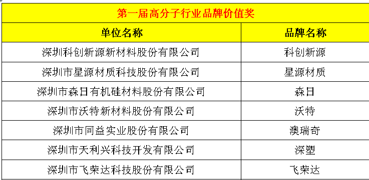 根据协会《关于开展第一届高分子行业科技进步奖、第一届高分子行业品牌价值奖、第三届高分子行业工匠奖等奖项评选的通知》的要求,协会组织了2019年会员内部评选表彰活动,本着公正、公平、公开的原则,经协会会员企业自愿申报、秘书处初评、小组通过等程序,现将评选结果公示,公示截止时间为:2020年6月4日17:00,对评选结果有异议请在公示时间内实名反馈至协会秘书处:深圳市南山区科苑南路武汉大学深圳产学研大楼A403,联系人:孙珍珍 0755-83461533-805